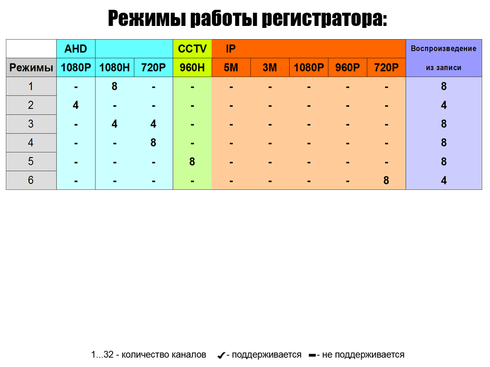 | Тип регистратора : | AHD / IP / TVI / CVI / CVBS |